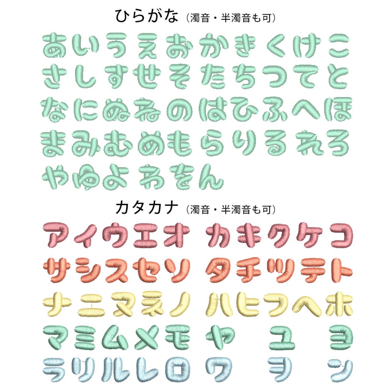 ※文字数は8文字(英字・数字・記号・ひらがな・カタカナ)+絵文字の刺繍が可能です。