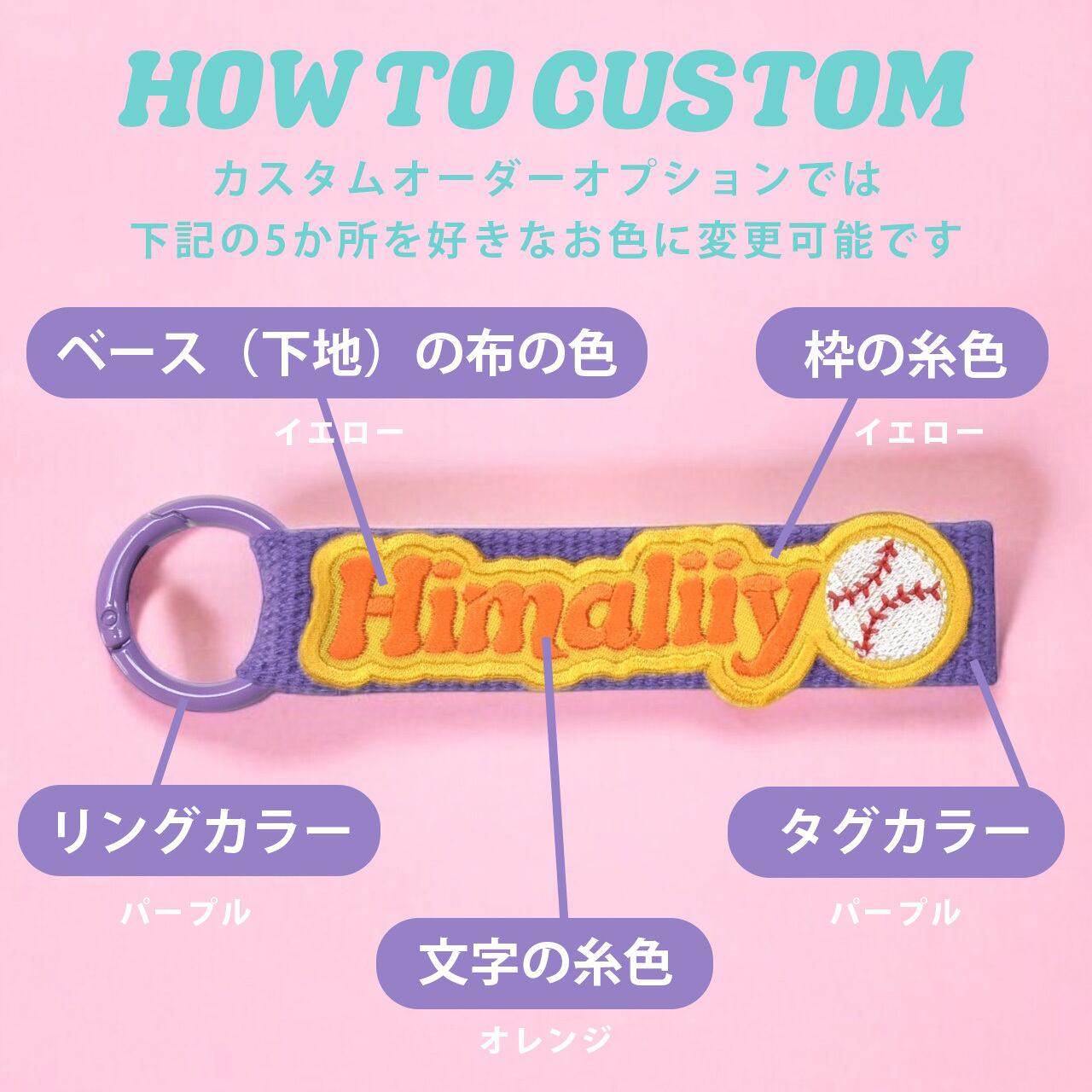 ※文字数は8文字(英字・数字・記号・ひらがな・カタカナ)+絵文字の刺繍が可能です。